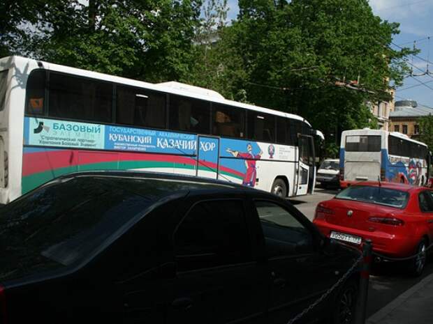 О том, что в Общественной палате была замечена толпа полицейских, еще 6 мая сообщал сайт общественников ассоциации «Голос». Корреспондент «Русской планеты» решил сам убедиться в наличии «выборных каруселей».О том, что на выборы в Общественную палату (ОП) продолжают намеренно свозит людей, написал 13 мая в своем твиттере один из кандидатов Григорий Мельконьянц. Действительно, с утра неподалеку от здания ОП припарковались два автобуса с надписью «Кубанский казачий хор». В автобусах с краснодарскими номерами были навалены горы сумок, но ни в салоне, ни в сквере поблизости казаков замечено не было. Перед входом в здание общественной палаты толпились люди, прячась от дождя под деревьями, они курили и перешучивались. На хаотичной парковке стояло несколько микроавтобусов. Под стеклом одного из них была прилеплена табличка, гласящая, что машина заказная.